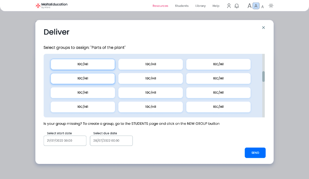 WAND permite profesorilor să distribuie lecții digitale elevilor într-un mod organizat și flexibil. Aceștia pot atribui lecții individual sau către grupuri de elevi și pot stabili perioada exactă de acces pentru fiecare lecție.